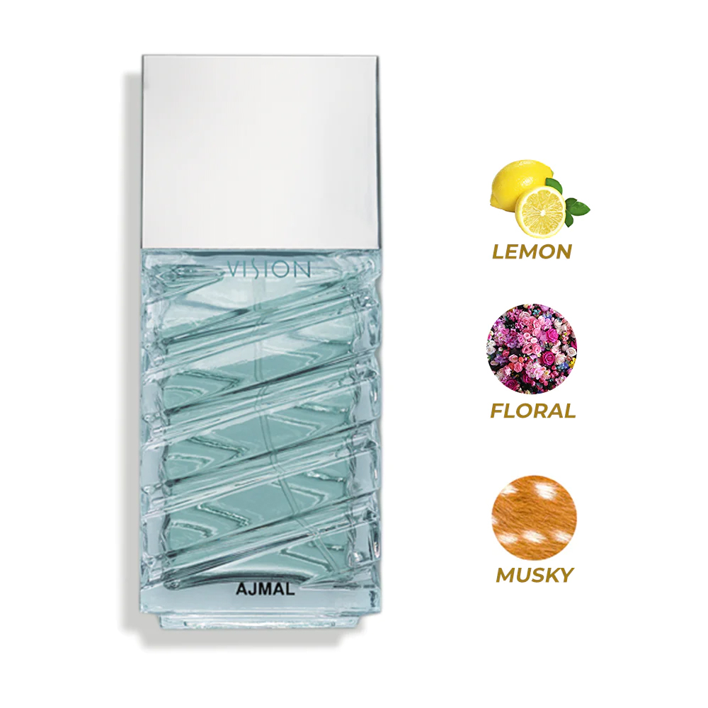Vision by Ajmal Perfume is a Woody fragrance for Men was launched in 2010. Vision exudes the spirit of the young, energetic male. A sparkling fragrance for men who exude passionate dynamism, Dominated by the vivacious Citrus Fresh notes of Lemon and Violet, the fragrance further enhances its magnetic appeal with a Floral Fresh heart.
