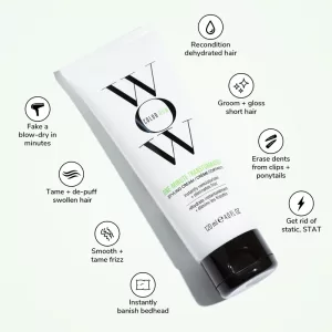 – Non-greasy cream smooths and defrizzes